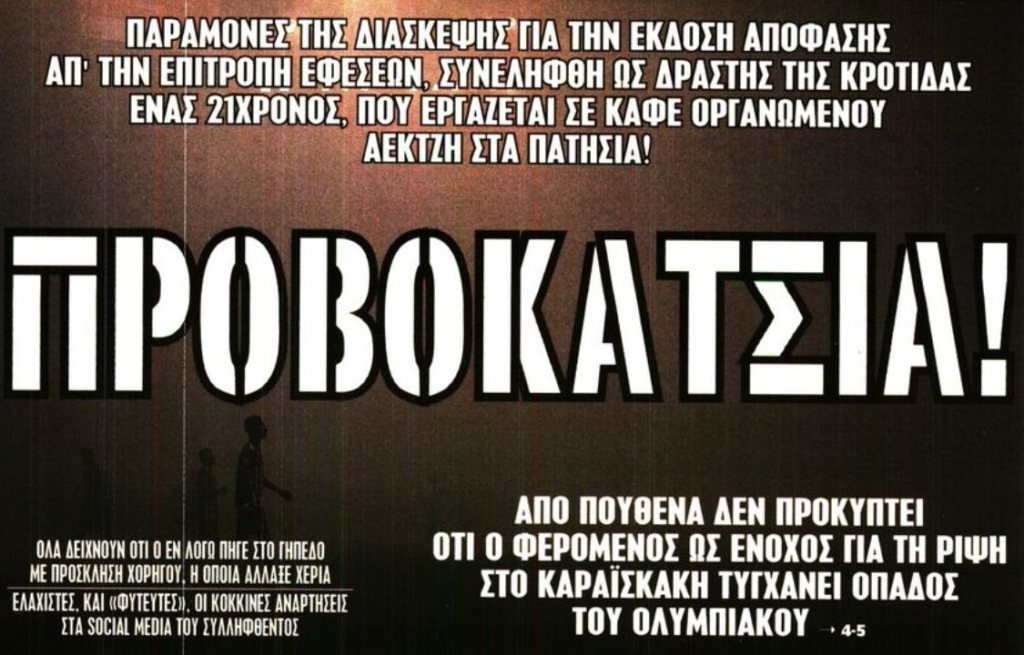 Αφού δεν έπιασε η επικοινωνιακή γραμμή με τις πίτσες στα αποδυτήρια του Παναθηναϊκού την νύχτα του ντέρμπι με τον τραυματισμό του Χουάνκαρ, τώρα με αφορμή την προσαγωγή του 21χρονου νεαρού που έριξε την κροτίδα περάσαμε στην… προβοκάτσια!