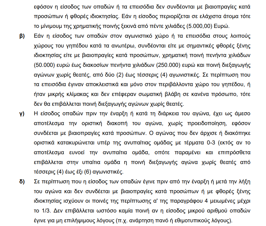 Με τον διαιτητή Παπαπέτρου να καλείται να αποφασίσει εντός μιας ώρας αν το ματς μεταξύ του Βόλου και του Ολυμπιακού μπορεί να συνεχιστεί μετά την σφοδρή ρίψη δακρυγόνων της αστυνομίας προς τους οπαδούς των Πειραιωτών λόγω επεισοδίων, σε ενδεχόμενο οριστικής διακοπής ο ΚΑΠ αναφέρει τα εξής: