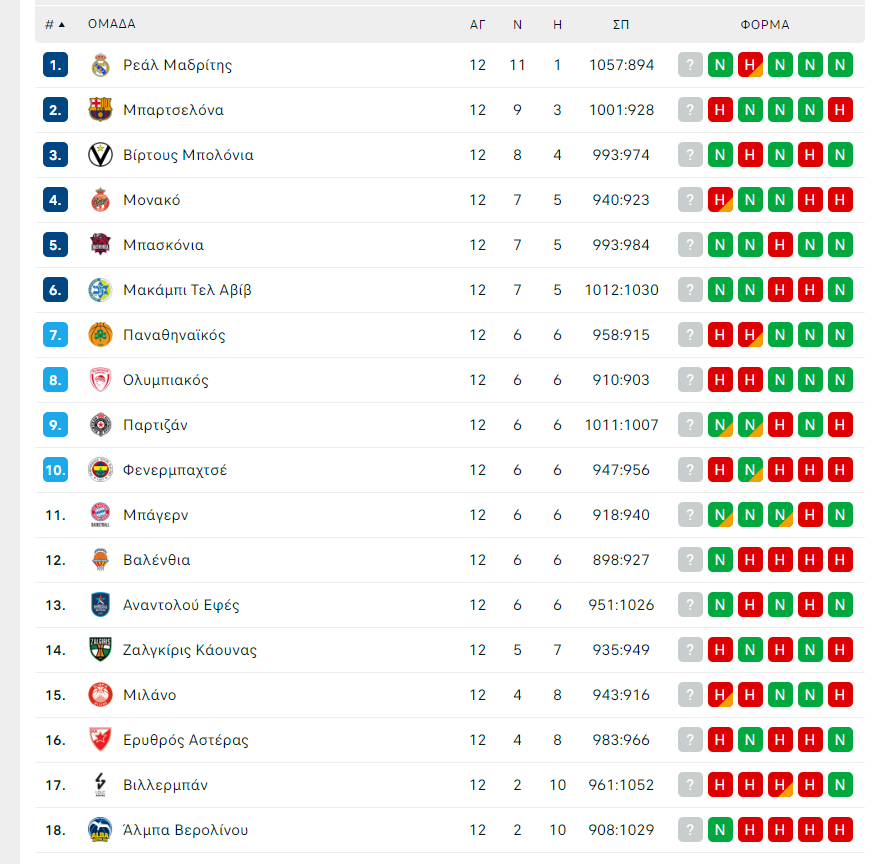 Η βαθμολογία της Superleague μετά το τέλος του πρώτου γύρου