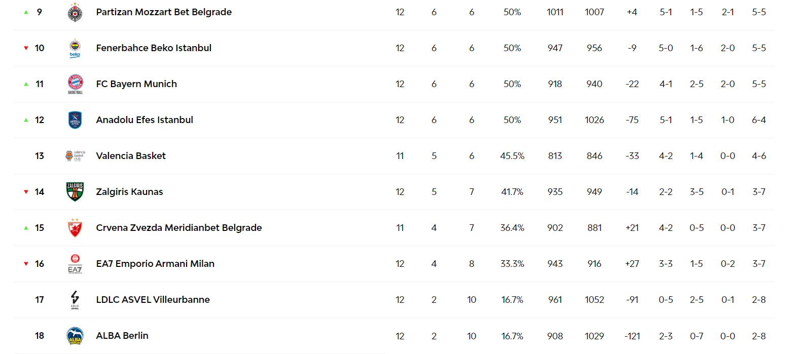 Ο Παναθηναϊκός μετά την ήττα από την Εφές βρίσκεται πλέον στην όγδοη της βαθμολογίας της Euroleague με ρεκόρ 6-6.