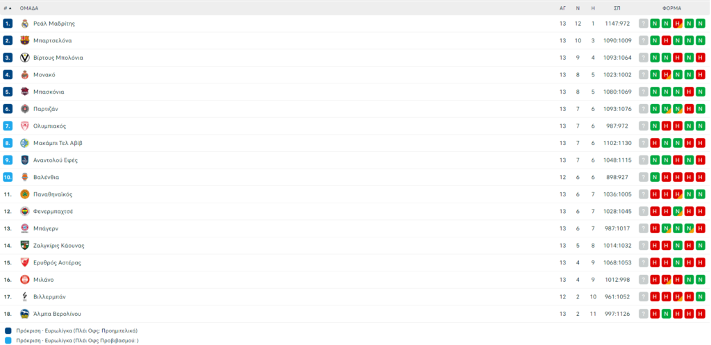 Ο Παναθηναϊκός έπεσε στην ενδέκατη θέση της βαθμολογίας της Euroleague καθώς πλέον έχει ρεκόρ 6-7. Έτσι τα επερχόμενα παιχνίδια με Βιλερμπάν, Αρμάνι Μιλάνο, Μονακό και Ερυθρό Αστέρα κρίνονται απολύτως κομβικά…