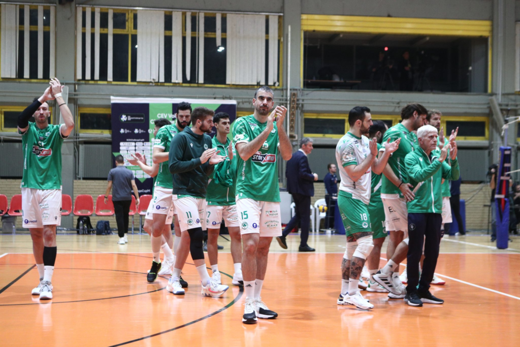 Το “τριφύλλι” προηγήθηκε με 2-1 σετ στο κλειστό του Μετς, αλλά η ιταλική ομάδα κατάφερε να επιστρέψει, παρά το καλό ρυθμό των γηπεδούχων. Ωστόσο, το σύνολο του Δημήτρη Ανδρεόπουλου ηττήθηκε με 3-2, στην φάση των 16 καλύτερων ομάδων του Challenge Cup, πληρώνοντας τα λάθη του.