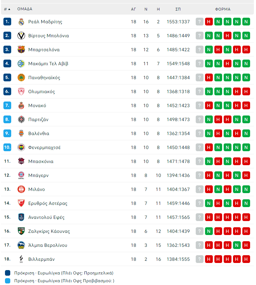 O Παναθηναίκός υποχώρησε στην πέμπτη θέση της βαθμολογίας της Euroleague μετά την ήττα του από την Μπασκόνια στην Βιτόρια και πλέον βρίσκεται στο 10-8 από πλευράς ρεκόρ.