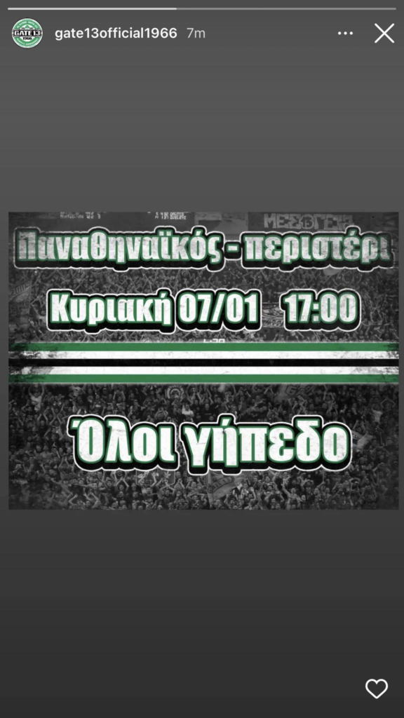 Ο Παναθηναϊκός υποδέχεται την Κυριακή (07/01 – 17:00) στο ΟΑΚΑ το Περιστέρι και η Θύρα 13 απευθύνει κάλεσμα στα μέλη της και στον κόσμο να στηρίξει τον Εργκίν Αταμάν και τους παίκτες του.