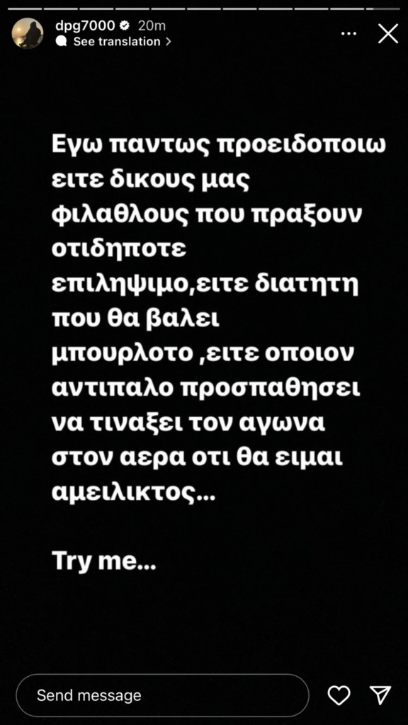 O μεγαλομέτοχος της ΚΑΕ έστειλε μήνυμα προς κάθε κατεύθυνση σε σχέση με το επερχόμενο ματς με τον Ολυμπιακό στο ΟΑΚΑ την προσεχή Δευτέρα.