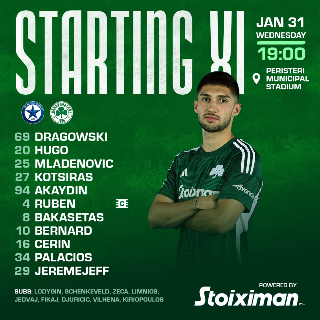 Ο Φατίχ Τερίμ παρατάσσει απέναντι στον Ατρόμητο τον Παναθηναϊκό με τον Ντραγκόφσκι κάτω από τα δοκάρια και μπροστά του τους Κώτσιρα, Ακαϊντίν, Ούγκο και Μλαντένοβιτς.