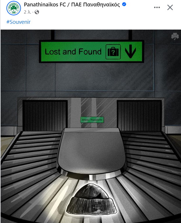 Ο Παναθηναϊκός ανέβασε ένα σκίτσο με ένα σκουφί που χάθηκε στο αεροδρόμιο… Ο καθένας ας βγάλει τα συμπεράσματα του.