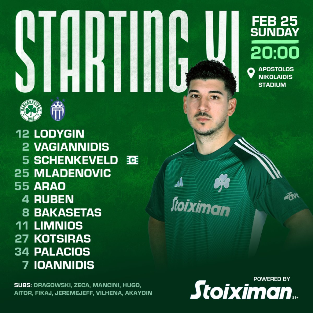 Στα χαφ θα είναι οι Ρούμπεν, Κώτσιρας και Μπακασέτας με επιθετική τριπλέτα τους Λημνιό, Παλάσιος και Ιωαννίδη.