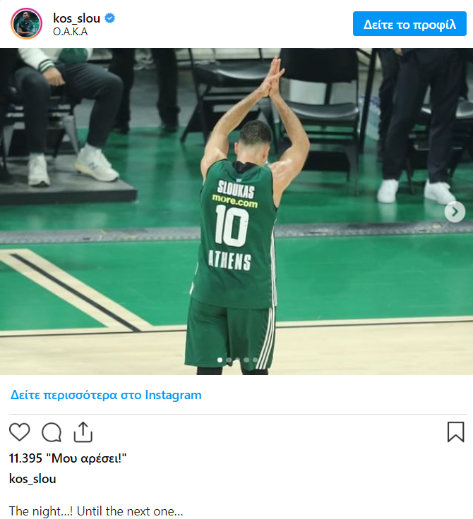 «Η νύχτα! Μέχρι την επόμενη φορά…», έγραψε στο Instagram ο Κώστας Σλούκας και ο Δημήτρης Γιαννακόπουλος του έγραψε από κάτω: «Ηγέτης!».