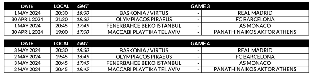 Η Euroleague έκανε γνωστές τις ημερομηνίες των αγώνων της δεύτερης εβδομάδας των playoffs της Εuroleague.