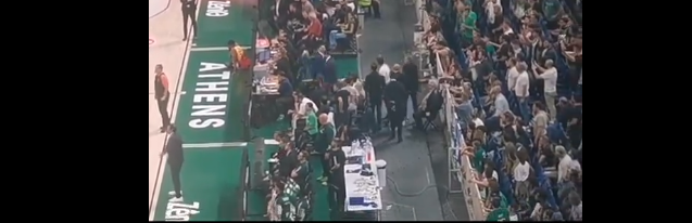 Είχε σηκωθεί η αποστολή της Μακαμπι απο τις θέσεις τους πλυσίων του πάγκου εκεί που καθόταν και ο ιδιοκτήτης της ομαδας και έκανα χειρονομίες και γιουχαραν του παίκτες μας όταν ζητούσαν κραυγαλέα φαουλ!