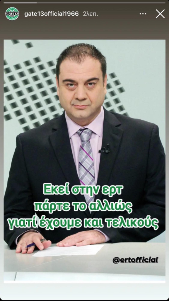 Σαφέστατη η Θύρα 13 μετά τις γελοιότητες που είδαμε από τον Άρη εντός παρκέ και από την ΕΡΤ 3 κατά τη μετάδοση του αγώνα.