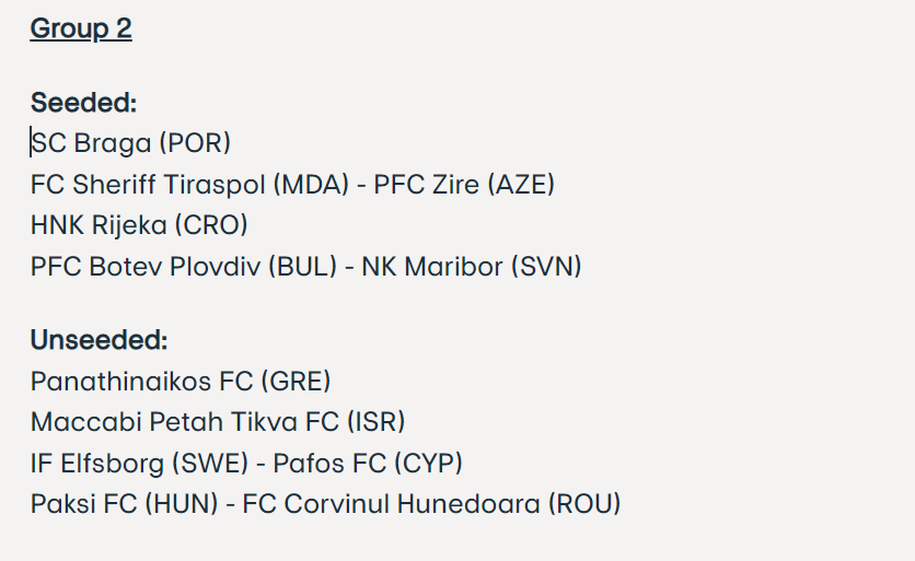 O Παναθηναϊκός θα βρει απέναντι του στην κληρωτίδα για τον Β’ προκριματικό γύρο του Europa League (η κλήρωση θα γίνει στις 14:00) την Μπράγκα, την Ριέκα και τους νικητές από τα ζευγάρια Σερίφ – Ζίρε και Μπότεφ-Μάριμπορ.