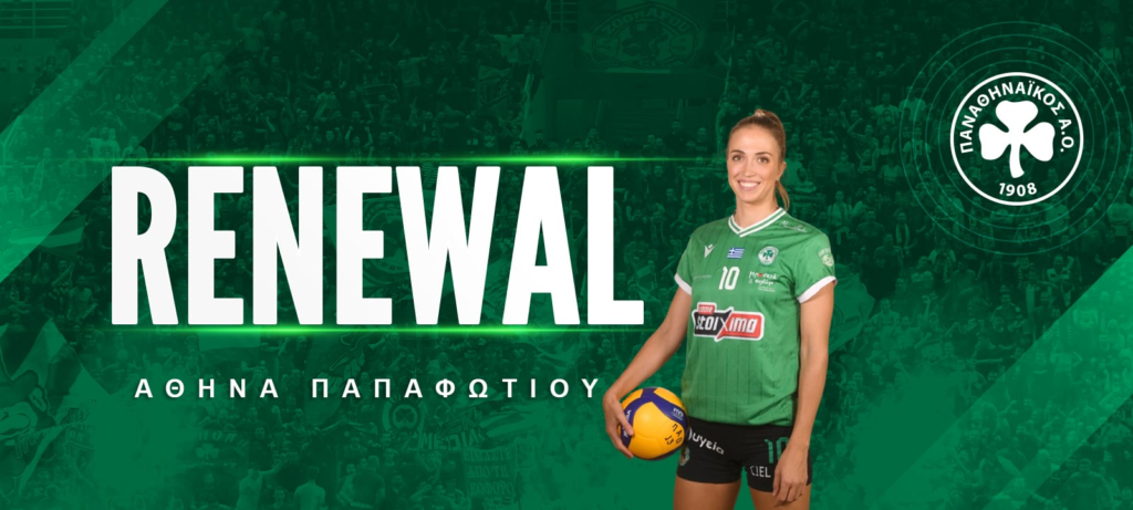 Ο Παναθηναϊκός Αθλητικός Όμιλος ανακοινώνει την ανανέωση της συνεργασίας του με την Αθηνά Παπαφωτίου για το γυναικείο τμήμα βόλεϊ, για την αγωνιστική σεζόν 2024-2025.