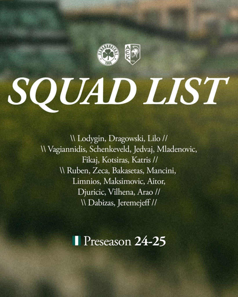 Μετά το τέλος της προπόνησης ο Ντιεγκό Αλόνσο ανακοίνωσε την αποστολή για την φιλική αναμέτρηση με την ΑΕΚ Λάρνακας. Στη λίστα βρίσκονται οι Ντραγκόφσκι, Λοντίγκιν, Λίλο, Βαγιαννίδης, Μλαντένοβιτς, Κώτσιρας, Σένκεφελντ, Γεντβάι, Ρούμπεν, Μπακασέτας, Αράο, Μαξίμοβιτς, Βιλένα, Ζέκα, Αϊτόρ, Γερεμέγεφ, Μαντσίνι, Τζούριτσιτς, Λημνιός, Κάτρης, Φικάι, Νταμπίζας.