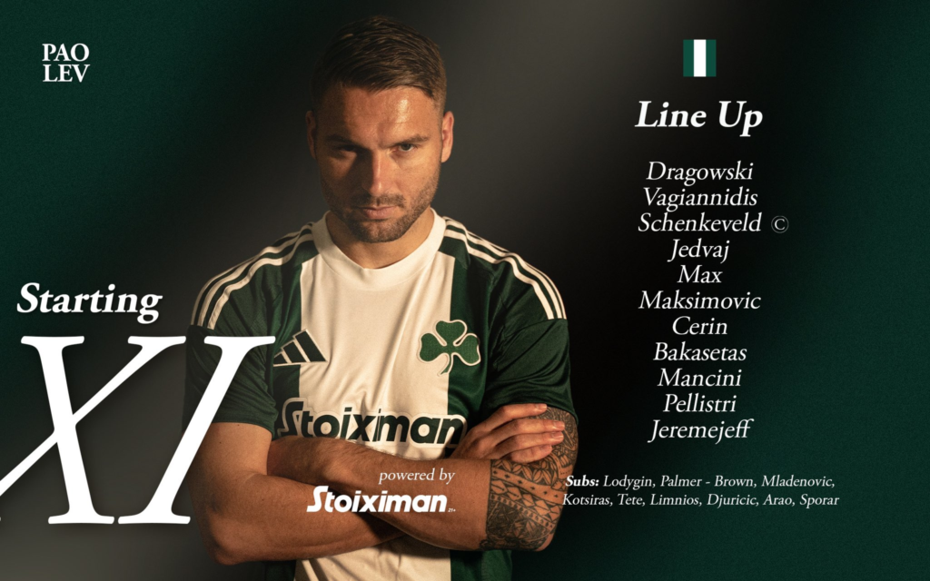 Στα χαφ θα είναι οι Μαξίμοβιτς, Τσέριν, Μπακασέτας και επιθετική τριπλέτα οι Πελίστρι, Γερεμέγιεφ και Μαντσίνι.