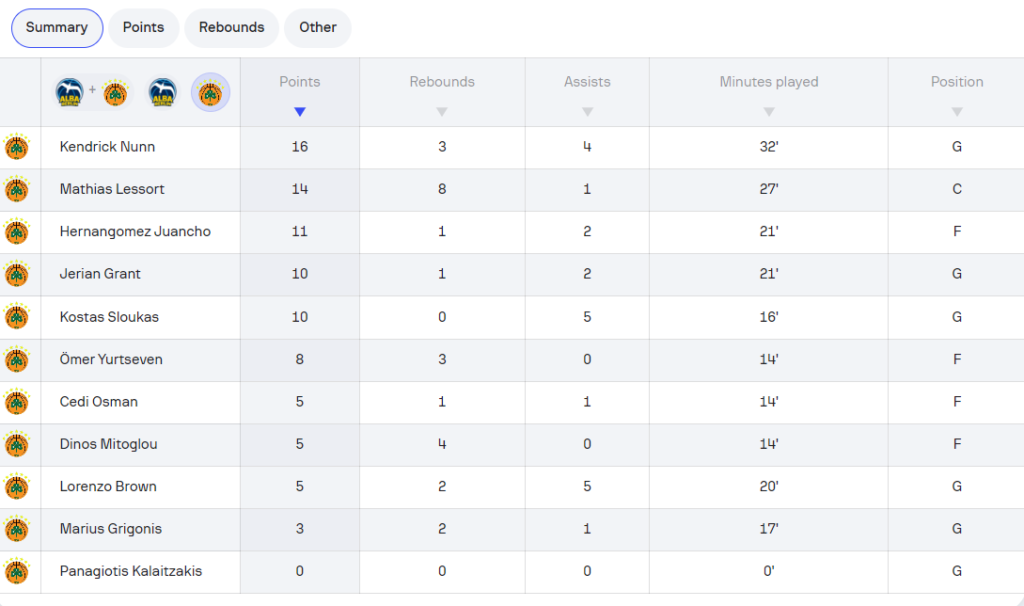 Κορυφαίοι για τον Παναθηναϊκό απέναντι στην Άλμπα Βερολίνου ήταν οι Ναν, Λεσόρ και Χουάντσο με 16, 14 και 11 πόντους αντίστοιχα.