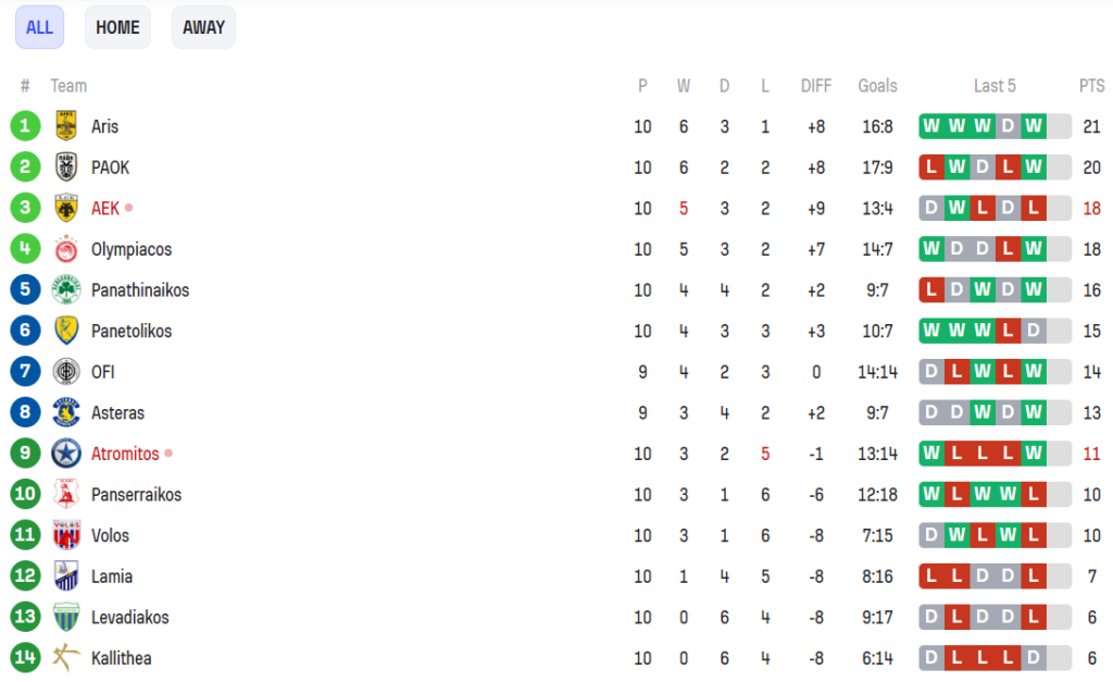 Μετά τη νίκη επί του Βόλου ο Παναθηναϊκός έφτασε στους 16 βαθμούς και παρέμεινε σε απόσταση 5 βαθμών από τον Άρη, 4 από τον ΠΑΟΚ και 2 από τον Ολυμπιακό.