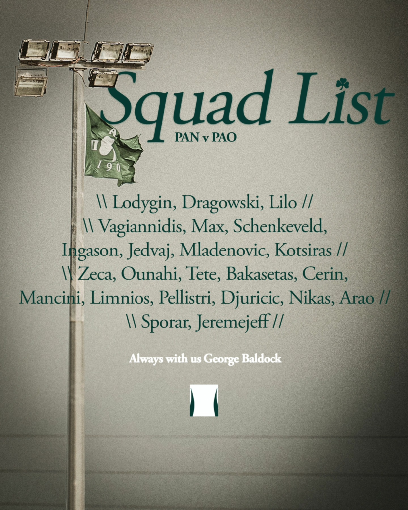 Μετά το τέλος της προπόνησης ο Ρουί Βιτόρια ανακοίνωσε τη λίστα με τους ποδοσφαιριστές που βρίσκονται στην αποστολή. Σε αυτή είναι οι Ντραγκόφσκι, Λοντίγκιν, Λίλο, Βαγιαννίδης, Μαξ, Σένκεφελντ, Ζέκα, Ουναΐ, Τετέ, Σπόραρ, Μπακασέτας, Ίνγκασον, Τσέριν, Μαντσίνι, Λημνιός,Γεντβάι, Μλαντένοβιτς, Κώτσιρας, Πελίστρι, Γερεμέγεφ, Τζούριτσιτς, Νίκας, Αράο.