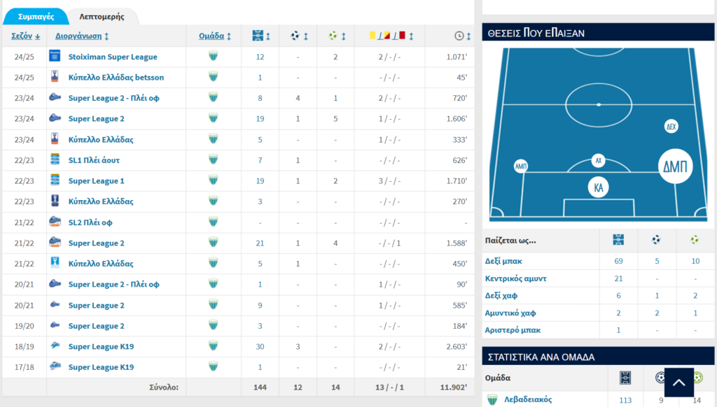 Τα στατιστικά του Τσάπρα στην έως τώρα καριέρα του: