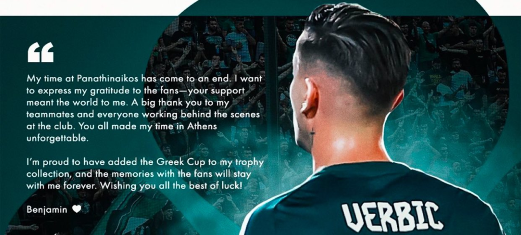 Το μήνυμα του Μπέντζαμιν Βέρμπις μετά τον τερματισμό της συνεργασίας του με τον Παναθηναϊκό αναφέρει τα εξής: