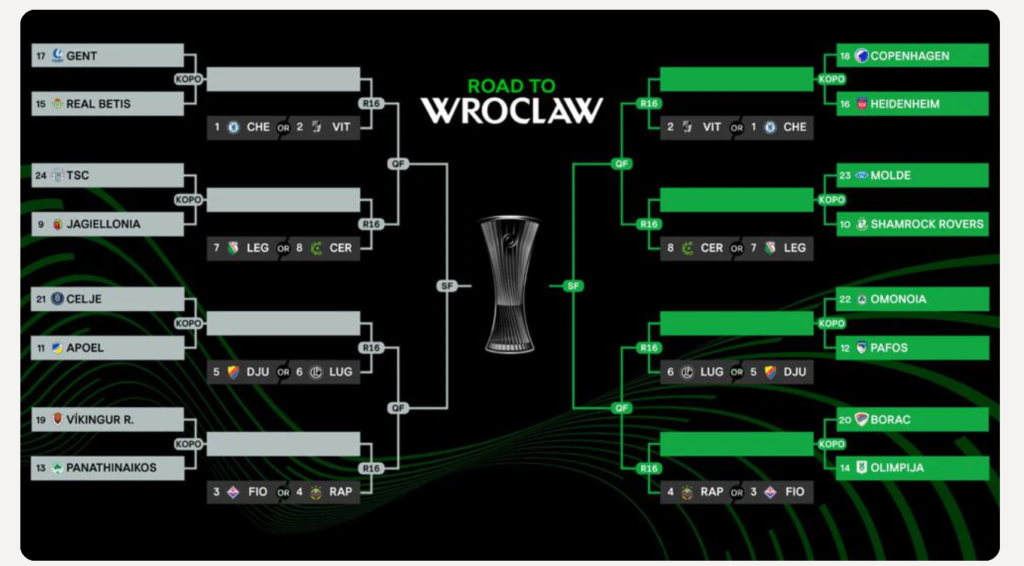 Στα ημιτελικά της διοργάνωσης θα συναντηθεί με την «διακλάδωση» της Τσέλσι. Ο νικητής του ζευγαριού που θα προκύψει από το Γάνδη–Μπέτις/Τσέλσι ή Γκιμαράες με Μπάτσκα Τόπολα– Γιαγκελόνια/Λέγκια Βαρσοβίας ή Σερκλ Μπριζ.