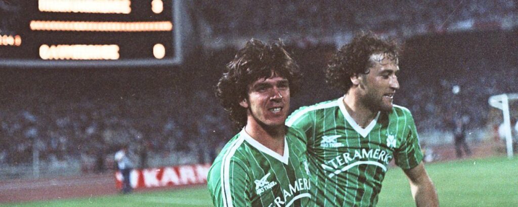 Ο Παναθηναϊκός ήταν ο νταμπλούχος το 1983-84 και υπό το βάρος της σπουδαίας πορείας που έκανε στην Ευρώπη την επόμενη σεζόν φτάνοντας μέχρι τα ημιτελικά του Κυπέλλου Πρωταθλητριών, δεν μπόρεσε να κατακτήσει για δεύτερη διαδοχική χρονιά το πρωτάθλημα. Η κληρωτίδα του Κυπέλλου έφερε νωρίς-νωρίς τους «Πράσινους» αντιμέτωπους με τον Ολυμπιακό σε διπλές αναμετρήσεις για τη φάση των 16. Σε μια εποχή και οι δύο ομάδες χρησιμοποιούσαν ως έδρα το ΟΑΚΑ, το «Τριφύλλι» επικράτησε στο πρώτο ματς (με τυπικά γηπεδούχους τους «Ερυθρόλευκους») με 1-0 χάρη σε γκολ του Θανάση Δημόπουλου στο 68’. Οι παίκτες του Γιάτσεκ Γκμοχ κυριάρχησαν και στη ρεβάνς νικώντας με 2-1. Και πάλι ο Θανάσης Δημόπουλος άνοιξε το σκορ (20’), ενώ ο Σαργκάνης (τότε αγωνιζόταν στον Ολυμπιακό) ισοφάρισε με εκτέλεση πέναλτι στο 54’. Η κλάση του Σαραβάκου όμως, που ήταν ο άνθρωπος των ντέρμπι, μίλησε ξανά, και στο 61’ με ένα θαυμάσιο σουτ διαμόρφωσε το τελικό σκορ.
