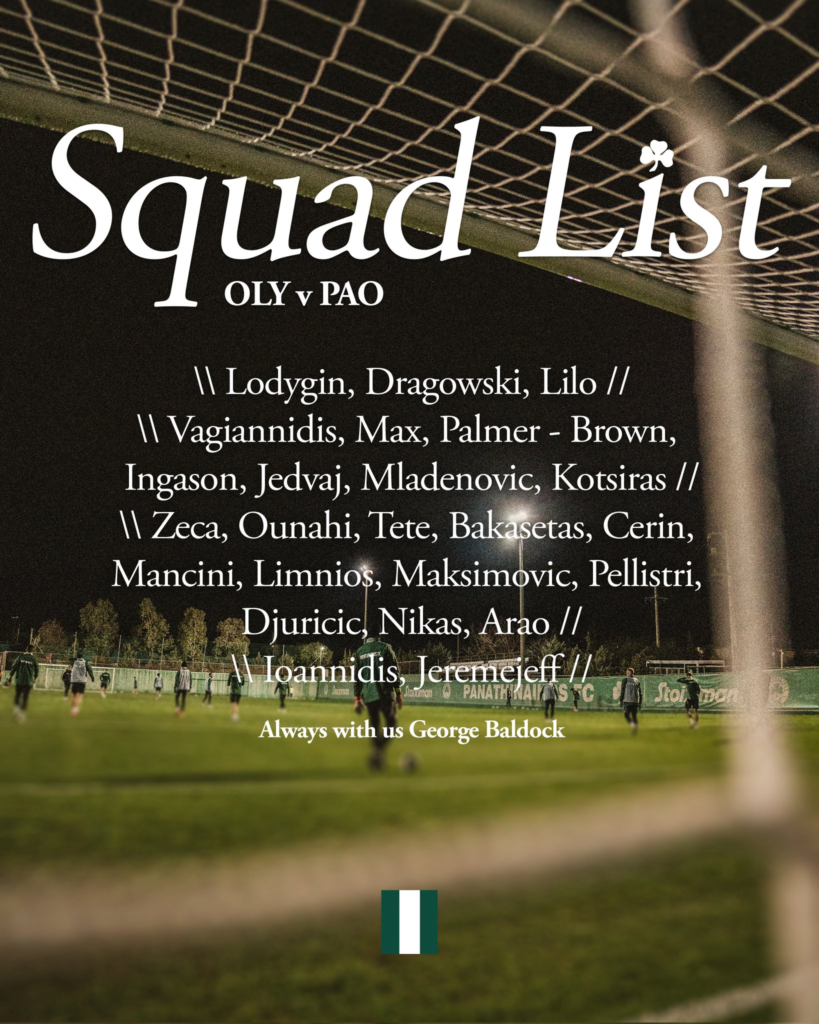 Μετά το τέλος της προπόνησης ο Ρουί Βιτόρια ανακοίνωσε τη λίστα με τα ονόματα της αποστολής. Σε αυτή βρίσκονται οι Λοντίγκιν, Ντραγκόφσκι, Λίλο, Βαγιαννίδης, Μαξ, Ζέκα, Ιωαννίδης, Ουναΐ, Τετέ, Μπακασέτας, Πάλμερ – Μπράουν, Ίνγκασον, Τσέριν, Μαντσίνι, Λημνιός, Μαξίμοβιτς, Γεντβάι, Μλαντένοβιτς, Κώτσιρας, Πελίστρι, Γερεμέγεφ, Τζούριτσιτς, Νίκας, Αράο.