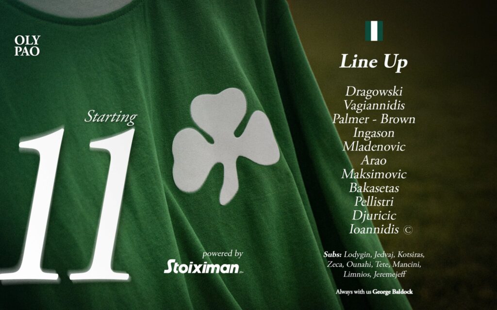 Στην άμυνα Βαγιαννίδης δεξία αρίστερα Μλαντένοβιτς και Πάλμερ-Μπράουν Ίνγκασον στα στόπερ.