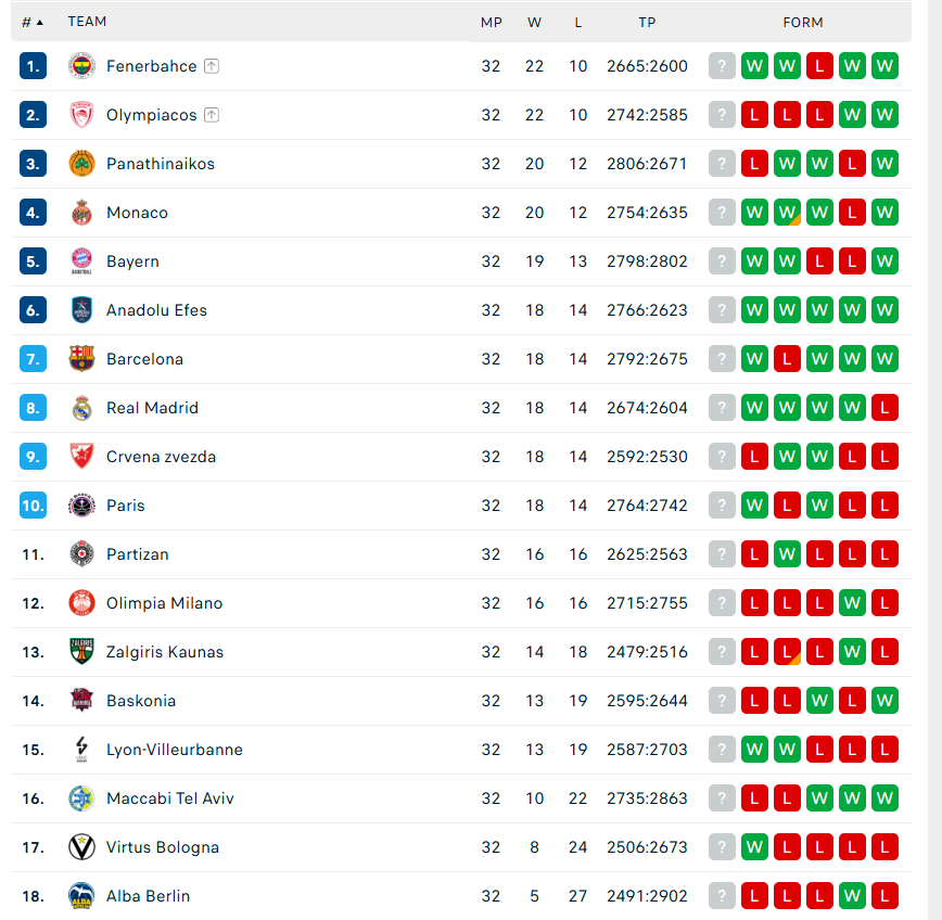29 Μαρτίου 2025 by leoforos1908-team Ο Παναθηναϊκός παραμένει στην τρίτη θέση της κατάταξης με ρεκόρ 20-12 μετά την ήττα από την Παρί στο ΟΑΚΑ.