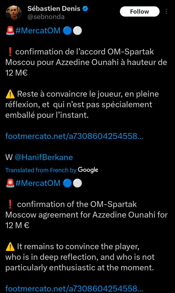Με βάση τα όσα αναφέρει ο Γάλλος ρεπόρτερ του footmercato, Σεμπαστιάν Ντενί, η συμφωνία ανάμεσα στη Μαρσέιγ και την Σπαρτάκ Μόσχας στα 12 εκατ. ευρώ θα πρέπει να θεωρείται δεδομένη.