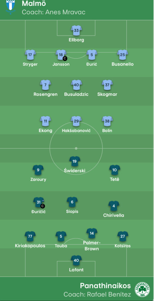 Η UEFA έκανε γνωστή την εντεκάδα του Παναθηναϊκού απέναντι στη Μάλμε με τον Ράφα Μπενίτεθ να επιλέγει τους εξής: