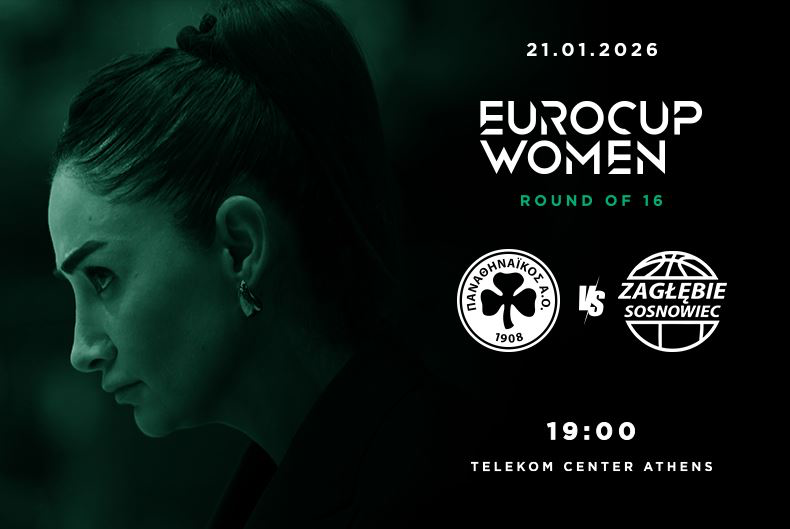 Ο Παναθηναϊκός Αθλητικός Όμιλος ανακοινώνει ότι ο επαναληπτικός αγώνας μπάσκετ του Eurocup Women της 21ης Ιανουαρίου με τη Ζαγκλεμπιέ Σόσνοβιτς θα γίνει στο Telekom Center Athens (7μ.μ.).