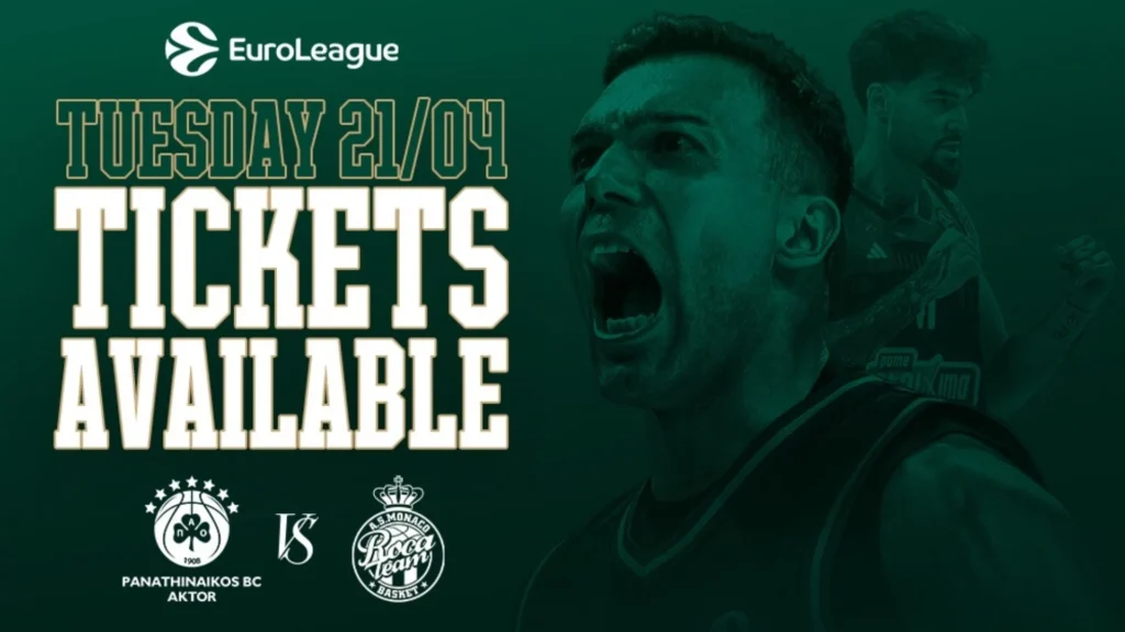Η ΚΑΕ Παναθηναϊκός AKTOR ενημερώνει πως τέθηκαν στη διάθεση των φιλάθλων της τα εισιτήρια για την εντός έδρας αναμέτρηση απέναντι στην AS Monaco, την Τρίτη 21 Απριλίου (21:00), για τα Play-in της EuroLeague.